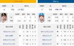 10/17(金)予告先発 上沢直之×伊藤大海