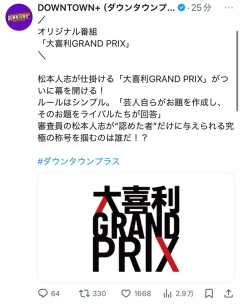 【速報】ダウンタウンプラス、大喜利バトルの新番組発表