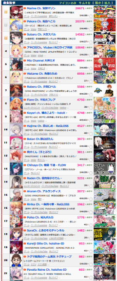 引用元: 270: Vtuberまとめ2025/10/17(金) 22:44:09.73 今日混雑しすぎじゃない? 310: Vtuberまとめ2025/10/17(金) 22:44:53.85 >>270 こよポケはじめに負けそうで草 313: Vtuberまとめ2025/10/17(金) 22:44:57.66 >>270 数字終わってるわ 323: Vtuberまとめ2025/10/17(金) 22:45:10.99 >>270 ドグマ風見懐かしいな ニコニコ時代よく見てたわ 339: Vtuberまとめ2025/10/17(金) 22:45:25.65 >>270 りりポルさぁ 411: Vtuberまとめ2025/10/17(金) 22:46:50.64 >>270 ポ…ポキモン 438: Vtuberまとめ2025/10/17(金) 22:47:23.73 >>270 わためいくか 478: Vtuberまとめ2025/10/17(金) 22:48:15.58 >>270 ポケモンデバフがやばいな 517: Vtuberまとめ2025/10/17(金) 22:49:07.93 >>270 MOTHERやっぱ数字出ないな 549: Vtuberまとめ2025/10/17(金) 22:49:49.36 >>270 アキロゼつよいな…