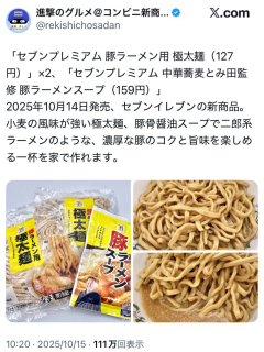 1 : セブンイレブンから「豚ラーメン用 極太麺」「中華蕎麦とみ田監修 豚ラーメンスープ」が新登場!二郎系ラーメンの新商品 2025年10月14日(火)より、セブンイレブンが「セブンプレミアム 豚ラーメン用 極太麺(127円)」を新発売します。 小麦の風味が強く食べごたえのある、コシと弾力が特長の極太タイプの生ラーメンです。 販売地域は、北海道、東北、茨城県、埼玉県、千葉県、東京都、神奈川県です。 また、「セブンプレミアム 中華蕎麦とみ田監修 豚ラーメンスープ(159円)」も新発売します。 15 : なんでダメなんだよ関東二県 19 : 茹でモヤシ用意するのがなぁ 21 : >>19 レンチンで対応しよう…