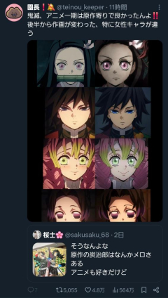 【画像】アニメ鬼滅の刃、男に媚びた作画に変わり始めた疑惑が浮上