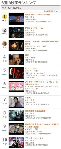 引用元: それでも動く名無し 2025/10/18(土) 19:06:35.63 ID:mee7EneY0 アイカツ!×プリパラ THE MOVIE -出会いのキセキ! 初動成績 動員7万4000人以上&興収1億3000万円以上 【参考】去年のラブライブ完結編映画 ラブライブ!虹ヶ咲学園スクールアイドル同好会 完結編 動成績 動員4万7000人&興収9800万円 2: それでも動く名無し 2025/10/18(土) 19:06:49.88 ID:mee7EneY0 10月10~12日の全国映画動員ランキングは、以下の通り 第1位:『劇場版 チェンソーマン レゼ篇』 第2位:『秒速5センチメートル』 第3位:『劇場版「鬼滅の刃」無限城編 第一章 猗窩座再来』 第4位:『国宝』 第5位:『トロン:アレス』 第6位:『アイカツ!×プリパラ THE MOVIE-出会いのキセキ!-』 第7位:『8番出口』 第8位:『沈黙の艦隊 北極海大海戦』 第9位:『劇場先行版「ゴールデンカムイ」札幌ビール工場編【前編】』 第10位:『ブラック・ショーマン』…