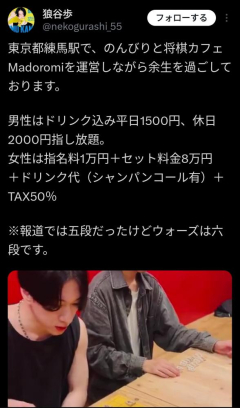 【朗報】頂き女子りりちゃんの彼氏、将棋カフェを運営し余生を楽しんでいた