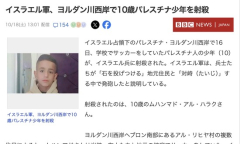 1 : イスラエル軍、ヨルダン川西岸で10歳パレスチナ少年を射殺 2 : イスラエル占領下のパレスチナ・ヨルダン川西岸で16日、学校でサッカーをしていたパレスチナ人の少年(10)が、イスラエル兵に射殺された。イスラエル軍は、兵士たちが「石を投げつける」地元住民と「対峙(たいじ)」する中で発砲したと説明している。 射殺されたのは、10歳のムハンマド・アル・ハラクさん。 ヨルダン川西岸ヘブロン南部にあるアル・リヒヤ村の複数住民によると、ムハンマドさんは当時、友人たちと地元の校庭でサッカーをしていた。イスラエル軍の車両がやって来たのに気がつき、ムハンマドさんたちは走り出したという。 「いつものことです。彼らは怖がって、村の方へ戻っていったんです」と、この様子を目撃した別の少年の保護者はBBCに話した。「(イスラエル軍に対する)脅威や挑発はありませんでした。何もありませんでした」。 この保護者によると、兵士の1人が車の後部から「無差別に発砲し始めた」。ムハンマドさんは骨盤を撃たれ、車で近くの病院に搬送されたが、死亡が確認されたという。 全文はソースで 6 : 鬼畜 7 : 住民を盾にしてるハマスを批判する声はないのか?それが不思議なんだわ。 16 : >>7 全員ハマスだから…