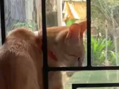 ロックしてある窓。 こんなのチョロいにゃ♪ 脱走ニャンコはこんな感じ……