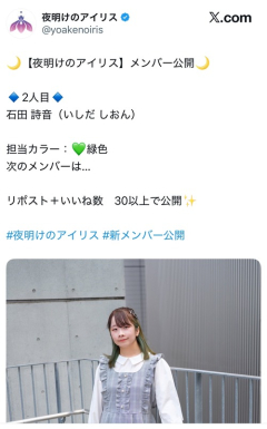 1: 2025/10/19(日) 14:09:27.98 強い ↓ ◥◣石田詩音を可愛くできる方 募集◢◤みなさんからの、たくさんのご意見を受けて【詩音を最高に可愛く変身させてくれる方】を募集します。■募集内容石田詩音を可愛くさせるための、コーディネート・スタイリング・ヘアメイクを担当できる方… pic.twitter.com/Pjtw2emYh2— 夜明けのアイリス (@yoakenoiris) October 19, 2025 ※関連記事 【画像】この漫画の「ダメ人間」と付き合っている彼女の話、少し怖くて草wwwww…