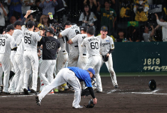 森下サヨナラホームランの後脱ぎ捨てたヘルメットを拾う牧秀悟がエモい