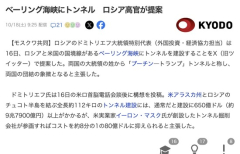 1 : 2 : ベーリング海峡にトンネル ロシア高官が提案 ロシアのドミトリエフ大統領特別代表(外国投資・経済協力担当)は16日、ロシアと米国の国境線があるベーリング海峡にトンネルを建設することをX(旧ツイッター)で提案した。両国の大統領の姓から「プーチン―トランプ」トンネルと称し、両国の団結の象徴となると主張した。 全文はソースで 3 : こんなの作っても需要無さそう…