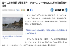 1 : フランスのラシダ・ダチ文化相は19日、X(ツイッター)に「(パリの)ルーブル美術館で今朝、強盗事件が発生した」と投稿した。ルーブル美術館は同日、「例外的な理由」で閉館を決めた。 地元メディアによると、覆面した3人の男が美術館開館後、チェーンソーを持って押し入り、9つの宝石を奪ってスクーターで逃げたという。けが人は出ていないとみられる。 2 : どうやって換金するんやろ 27 : >>2 覆面した3人組でチェーンソー、逃走用スクーターと計画的 盗んだものと金を交換出来る算段があるからこういう大事件が起きるわけだ 例えば金持ちがあれがどうしても欲しいと言えばそれをそいつに渡せば金が貰えるといった具合に…