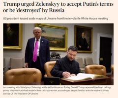 1: 名無し 2025/10/20(月) 06:31:20.78 ID:movXAhrq0 BE:828293379-PLT(12345) 新着:ホワイトハウスでの緊張した会談で、トランプはゼレンスキーにプーチンの和平条件——ドンバス地域の放棄——を受け入れるか、ロシアによる「破壊」に直面するかと迫った。 会談は叫び声が飛び交うまでに発展し、トランプはウクライナの戦場地図を無視し、以前の電話でプーチンが述べた主張を繰り返した。 ゼレンスキーは、トランプがトマホークミサイルの送付を拒否した後、苛立って去った。 【悲報】伊東市 田久保市長、終わる 市議選当選者20人のうち18人が反対派 【速報】 国民民主党の玉木代表、ようやく気づいた模様wwwwwww 【画像】 ちいかわ 事故る…