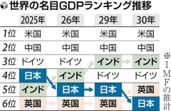 【悲報】日本のGDP、5年後にイギリスに抜かれて6位に転落する模様wwww