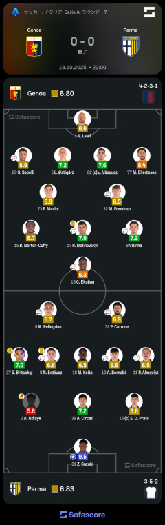 【採点】パルマGK鈴木彩艶さん、ジェノア戦の採点がヤバすぎるwwwwwwwww