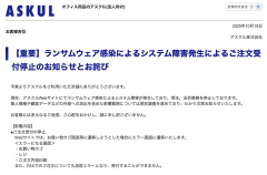 1:ぐれ ★ 2025/10/20(月) 08:30:32.42 ID:gAHnsI6K9 アスクル(本社、東京都江東区)は10月19日、ランサムウエア感染によるシステム障害が発生したと発表した。ステム障害により、「ASKUL」「ソロエルアリーナ」の受注・出荷業務、「LOHACO」の受注・出荷業務を停止しているという(19日午後6時30分現在)。 同社では「すでにいただいたご注文については、大変恐れ入りますがご注文キャンセルとさせていただきます。個人情報や顧客データなどの外部への流出を含めた影響範囲については現在調査を進めており、分かり次第お知らせいたします」としている。…