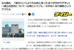 1: 名無し 2025/10/21(火) 11:24:55.79 ID:Iu9CbRNr0● BE:662593167-2BP(2000) 元テレビ朝日社員の玉川徹氏が21日放送の「羽鳥慎一モーニングショー」で、 自民党と日本維新の会による連立政権合意書について持論を述べた。 玉川氏は「公明党と連立していた時には決して入らなかった要素が満載。 保守というより“右翼”のオンパレードになっている」と指摘。 特に「皇室・憲法改正・家族制度」が強く打ち出されている点を問題視した。 維新の提言に沿う形で「集団的自衛権の全面容認」や「国防軍保持」が盛り込まれている可能性にも言及し、 「公明党は平和の党としてブレーキ役を果たしていたが、それが外れた」と懸念を示した。 また玉川氏は「ナショナリズム的要素が随所に見られる。外国人政策や家族観まで盛り込まれ、 保守ではなく“右翼的国家主義”の色合いが濃い」とまとめた。 ■要約 ・玉川徹氏、自民×維新の合意書を「右翼的文書」と批判。 ・皇室・憲法改正・家族制度など“右派要素”満載と指摘。 ・公明党離脱で「ブレーキ役が外れた」と懸念。 ・維新との連立でナショナリズムが強まったとの見方。 ■解説 玉川氏の発言は、メディア内でも意見が分かれる「高市・維新連立」の評価を象徴している。 公明党が離脱したことで、連立の理念は“安定と調和”から“改革と国家主義”へと軸足を移した。 現政権が推進する憲法改正や防衛強化は、国際的には主権国家の自立を目指す動きと受け取られるが、 国内では「右傾化」と「自主防衛」のどちらに映るかで世論が割れる構図だ。 政策文書の言葉一つひとつが、今後の政権の方向性を占う試金石となる。 出典: Yahoo!ニュース(2025年10月21日) 【社会】大谷選手の快挙、日本人がすごいのではない(産経抄)… 【画像】 人気アイドル(27)さん、大人の色香を解禁して見せまくってしまう 【痙攣】10代の少女、おばさんにガチイキさせられる姿を配信されてしまう……