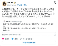 パスタ屋で小柄な女性が会員カード持ち+大盛り+トッピング複数注文。すると彼女の隣の男がソワソワと屈んで彼女に話しかけた