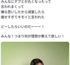 【画像】女の子「デブとか言われて頑張って痩せたのにキモい言われた!どーしたらいいの!」