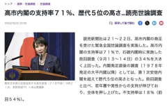 1 : 読売新聞社は21~22日、高市内閣の発足を受けた緊急全国世論調査を実施した。高市内閣の支持率は71%で、石破内閣時に実施した前回調査(9月13~14日)の34%を大きく上回った。内閣発足直後の調査(1978年発足の大平内閣以降)としては、第1次安倍内閣を超えて歴代5位の高さとなった。前回調査と比べ、若年層や男性からの支持が伸びており、全体を押し上げた。不支持率は18%(前回54%)。 2 : 日本人ちょろすぎる 3 : オールドメディアの情報操作なんて信じひんで…