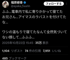 1:以下、?ちゃんねるからVIPがお送りします:2025/10/22(水) 17:24:30.321 ID:PeEOBvEH0 ちょっと横になるわ… 2:以下、?ちゃんねるからVIPがお送りします:2025/10/22(水) 17:25:12.661 ID:rRYtHFPs0 よかったね 3:以下、?ちゃんねるからVIPがお送りします:2025/10/22(水) 17:25:19.475 ID:TmuihGvt0 性交アピール…