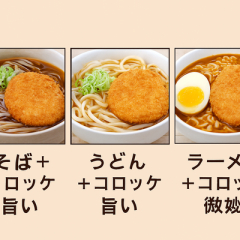 そば+コロッケ←旨い うどん+コロッケ←旨い ラーメン+コロッケ←微妙