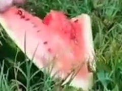 お母さんと子供が一緒にスイカを食べていた。そこじゃない! → 苦戦する子供はこちらです…