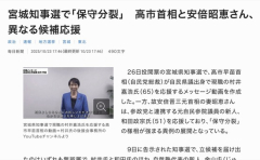 1 : 宮城知事選で「保守分裂」 高市首相と安倍昭恵さん、異なる候補応援 | 毎日新聞 26日投開票の宮城県知事選で、高市早苗首相(自民党総裁)が自民県議出身で現職の村井嘉浩氏(65)を応援するメッセージ動画を作成した。一方、故安倍晋三元首相の妻昭恵さんは、参政党と連携する元自民参院議員の新人、和田政宗氏(51)を応援しており、「保守分裂」の様相が強まる異例の展開となっている。全文はソースで 10 : 村井も和田もゴミだから 第三者が当選してほしい 90 : >>10 これ 都知事選といい、罰ゲームみたいな人選で可哀想…