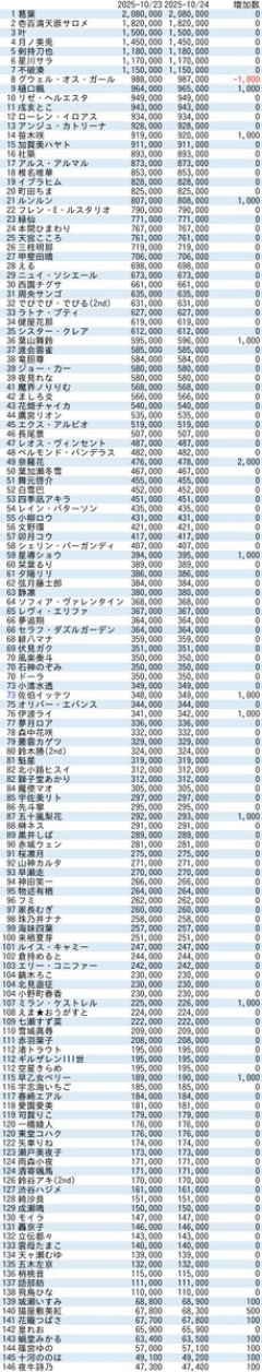 引用元: 3293: Vtuberまとめ 2025/10/24(金) 00:18:49.15 ID:ndsVvxUL むしきんぐ 3304: Vtuberまとめ 2025/10/24(金) 00:19:30.93 ID:SkEYHpgC >>3293 最早何でもいいんだけどタモリ普通にモリモリ減っていくのな 3314: Vtuberまとめ 2025/10/24(金) 00:20:16.91 ID:lidyeYj7 >>3293 タモリこのまま60万くらいまで戻そう 3407: Vtuberまとめ 2025/10/24(金) 00:26:53.91 ID:nUs5aeSn >>3293 葉山60万耐久しろ 3475: Vtuberまとめ 2025/10/24(金) 00:31:58.38 ID:43Cf27QG >>3293 しゃしゃ金盾かなりかかると思われたが結構行けそうなペースになってきたな これからエアライドチャンピオンズぽこあポケとか結構コンテンツあるし 3482: Vtuberまとめ 2025/10/24(金) 00:32:55.53 ID:lidyeYj7 >>3475 伸びるためには既存ファンの意見も振り切るべきなんだ 笹木さんはよくわかっとる 3496: Vtuberまとめ 2025/10/24(金) 00:34:10.11 ID:HP8MmxV2 >>3475 登録伸びてるなら正解か笹木の当面の目標って間違いなく金盾だろうし 3500: Vtuberまとめ 2025/10/24(金) 00:34:35.40 ID:68HFvGAP >>3475 話題性あったし今見に普通に可愛いし登録増えるのも納得なのよね…