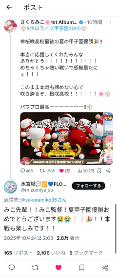 引用元: 175: Vtuberまとめ2025/10/24(金) 12:10:38.91 すうちゃんちゃっかりしてて草 194: Vtuberまとめ2025/10/24(金) 12:11:29.00 >>175 スタメンだしな 207: Vtuberまとめ2025/10/24(金) 12:11:51.12 >>175 唯一の1年生スタメンだからな嬉しかったんだろ可愛いやん 212: Vtuberまとめ2025/10/24(金) 12:11:59.49 >>175 それみこちも返信してるんちゃう 214: Vtuberまとめ2025/10/24(金) 12:12:09.77 >>175 お姉ちゃんだよ 222: Vtuberまとめ2025/10/24(金) 12:12:37.51 >>175 すう可愛いな 238: Vtuberまとめ2025/10/24(金) 12:13:07.60 >>175 みこに擦り寄ってきたな 250: Vtuberまとめ2025/10/24(金) 12:13:36.93 >>175 ぺこみこ♥うおおおおおおおおおおおおおおおおおおおおおおおおおおおおおおおおおおおおおおおお 267: Vtuberまとめ2025/10/24(金) 12:14:35.01 >>175 ちはに続いて派閥入りか…
