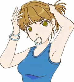 お胸と脇を見せびらかしながらポニーテールを結ぶ女が撮られる