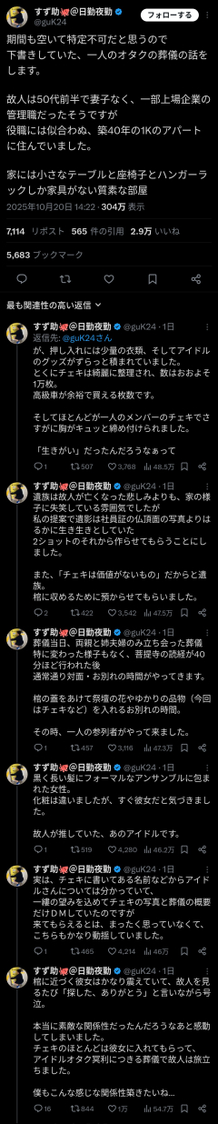 【衝撃】アイドルオタク50代男性が孤独死 → 遺品整理した結果とんでもない奇跡が起こる