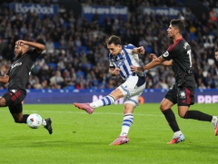 久保不在続くソシエダがようやく今季2勝目!! エースFWオヤルサバル2発で降格圏脱出[10.24 ラ・リーガ第10節 ソシエダ 2-1 セビージャ] ラ・リーガは24日、第10節を各地で行い、MF久保建英所属のソシエダがセビージャに2-1で勝利した。4試合ぶりの白星で今季2勝目を挙げ、暫定ながら降格圏を脱出。今季久保は左足首の負傷のため、前節・セルタ戦(△1-1)に続いて2試合連続で欠場した。 ソシエダは前半16分、久保の代役で出場しているMFゴンサロ・ゲデスが素早い右足の振りでクロスを送ると、MFヤンヘル・エレーラが反応したことで相手のハンドを誘発。PKを獲得し、FWミケル・オヤルサバルがこれを決めて1-0とした。 対するセビージャも右サイドからのFKをDFガブリエル・スアソがマイナス方向に低く送り込むと、MFネマニャ・グデリが左足ダイレクトでボレーシュート。これをMFジョン・ゴロチャテギが処理できず、クリアし損ねたボールがゴールマウスに吸い込まれ、1-1の同点となった。 ソシエダは前半30分過ぎ、負傷から復帰2試合目となった今季新加入のエレーラが再び負傷し、MFカルロス・ソレールを投入。それでも同36分、ソシエダはMFブライス・メンデスが左サイドで相手のスローインを奪うと、すかさず出したパスが相手に当たってゴール前に転がり、華麗な身のこなしで反応したオヤルサバルがシュート。エースの2点目が決まり、2-1となった。 後半は拮抗した展開が続いたが、ソシエダは負傷明けで待望の今季初出場を果たした19歳DFジョン・マルティンが局面で力強い守備対応を続けると、前線もこの奮闘に応えて運動量を発揮。1点のリードを最後まで守り切り、待望の今季2勝目を収めた。【Real】久保建英応援スレ part1433【Sociedad】…