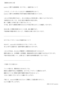 引用元: 2361: Vtuberまとめ (ワッチョイW 90e5-BfDZ) 2025/10/25(土) 12:03:53.45 ID:jEQ6DT58 nayuta @7utauta (2025/10/25 12:03:43) [返信:@のみ] 【重要なお知らせ】 nayutaに関する虚偽情報・なりすまし・迷惑行為について 【重要なお知らせ】nayutaに関する虚偽情報・なりすまし・迷惑行為について pic.twitter.com/7lqpcJSQ8n — nayuta (@7utauta) October 25, 2025 2365: Vtuberまとめ (ワッチョイ 429d-UD5r) 2025/10/25(土) 12:04:22.94 ID:p7Xb8acj >>2361 あっこりゃああああああああああああああああああああああああああああ 2368: Vtuberまとめ (ワッチョイW 7b5b-dhiC) 2025/10/25(土) 12:04:32.61 ID:3eza0Hfa >>2361 ホンマに可哀想 2369: Vtuberまとめ (ワッチョイW 068e-b4c8) 2025/10/25(土) 12:04:37.06 ID:qxvO1n3x >>2361 釈迦怒られてやんの 2370: Vtuberまとめ (ワッチョイW cdc1-Vbfk) 2025/10/25(土) 12:04:39.63 ID:ZsbB4P5r >>2361 nayutaを信じる🦄 2371: Vtuberまとめ (ワッチョイW fe65-EMSC) 2025/10/25(土) 12:04:43.15 ID:ceBMTNRe >>2361 ガイガイ終了 2373: Vtuberまとめ (ワッチョイ ade5-HNAe) 2025/10/25(土) 12:04:49.32 ID:YtVg5lDP >>2361 あ 2374: Vtuberまとめ (ワッチョイW bd5b-3ncs) 2025/10/25(土) 12:04:52.11 ID:FnTxJkMF >>2361 シャカシャカ 2375: Vtuberまとめ (ワッチョイ 2033-oMbI) 2025/10/25(土) 12:04:53.03 ID:7sVgZEUQ >>2361 こりゃああああああああああああ 2376: Vtuberまとめ (ワッチョイW ad22-o0cX) 2025/10/25(土) 12:04:53.63 ID:g9CsvtkD >>2361 釈迦逝ったあああああああああああ 2377: Vtuberまとめ (ワッチョイW ad24-prgv) 2025/10/25(土) 12:04:53.79 ID:vm0dBOKn >>2361 そんな大事なのなってるのか マジでかわいそう 2378: Vtuberまとめ (ワッチョイW fe65-oc25) 2025/10/25(土) 12:04:54.34 ID:c09mjPcL >>2361 勝手に名前出されて巻き込まれて大変だ… 2379: Vtuberまとめ (ワッチョイW ade5-WzTy) 2025/10/25(土) 12:04:55.27 ID:rve6oDef >>2361 🦄勝ったな 2380: Vtuberまとめ (ワッチョイW 228e-aCYx) 2025/10/25(土) 12:04:55.77 ID:9uMhSrOm >>2361 “一部動画配信” 2381: Vtuberまとめ (ワッチョイ c59d-Iwb4) 2025/10/25(土) 12:04:57.40 ID:85jtoO7l >>2361 つよい 2382: Vtuberまとめ (ワッチョイW d307-aCYx) 2025/10/25(土) 12:05:11.02 ID:TMTStD7I >>2361 読みやすいレイアウトだな カバーも見習えよ 2383: Vtuberまとめ (ワッチョイ a78e-tb31) 2025/10/25(土) 12:05:11.97 ID:CGo1DEfc >>2361 ほんまに可哀そう 2384: Vtuberまとめ (ワッチョイW ae2d-vxu1) 2025/10/25(土) 12:05:12.66 ID:kzt8I257 >>2361 釈迦さん嘘だよな… 2386: Vtuberまとめ (ワッチョイ dc8e-vQTi) 2025/10/25(土) 12:05:35.45 ID:fyvIqEhc >>2361 あーあ 2388: Vtuberまとめ (ワッチョイW fe65-Qla3) 2025/10/25(土) 12:05:38.93 ID:wd7Nw4gv >>2361 さすがにバチおこで草 2390: Vtuberまとめ (ワッチョイW c88f-wkLn) 2025/10/25(土) 12:05:42.92 ID:RyxoPzMU >>2361 釈迦開示請求されるか 2394: Vtuberまとめ (ワッチョイ fe65-Iwb4) 2025/10/25(土) 12:05:51.23 ID:09KkN5AY >>2361 今日はシャカシャカポテトにするわ 2395: Vtuberまとめ (ワッチョイ e68a-oMbI) 2025/10/25(土) 12:05:56.28 ID:TMoarwfx >>2361 まず釈迦に法的措置取ってくれんか 2400: Vtuberまとめ (ワッチョイW 7b5b-kP4P) 2025/10/25(土) 12:05:59.37 ID:FxhBxPu8 >>2361 ひなーのは? 2405: Vtuberまとめ (ワッチョイW 7da2-Jstn) 2025/10/25(土) 12:06:08.23 ID:kzBMZLUk >>2361 シャカでーすw 2419: Vtuberまとめ (ワッチョイW 8b65-XWfI) 2025/10/25(土) 12:06:54.24 ID:p3yq5Shr >>2361 急に痴漢されてホント大変だな 2427: Vtuberまとめ (ワッチョイW ad2e-wkLn) 2025/10/25(土) 12:07:20.15 ID:rGHK8XI9 >>2361 なゆたんが誰かと付き合ってるわけねえだろ! 2444: Vtuberまとめ (ワッチョイW 7b5b-hrbl) 2025/10/25(土) 12:08:40.28 ID:RJEikjZO >>2361 ひなーのどうすんのこれ 2445: Vtuberまとめ (ワッチョイ de07-Iwb4) 2025/10/25(土) 12:08:40.78 ID:uyqJeLd0 >>2361 どりゃあああああああああああああああああああああああああああああああああああああああああああああああああ 2465: Vtuberまとめ (ワッチョイ 908e-RSdM) 2025/10/25(土) 12:10:03.63 ID:AIjVZjpE >>2361 アクセ女が肯定してなければなぁ 2473: Vtuberまとめ (ワッチョイ d3f9-MpBN) 2025/10/25(土) 12:10:46.59 ID:LAtc8ncM >>2361 大変だなぁ 2510: Vtuberまとめ (ワッチョイW bd5b-GRai) 2025/10/25(土) 12:14:47.05 ID:LAZ0BEo6 >>2361 問題が発覚しているのにその後アーカイブを丸一日放置してデマを拡散し続けたぶいすぽと橘ひなのの対応がまじでクソすぎる…