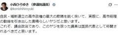 1. 匿名@ガールズちゃんねる 小西氏は24日夜、Xを複数回更新。「ヤジは非常に重要な国会議員の議会活動です」と述べた。また、「裏金問題解決しましょう」というヤジが飛んだことを記したユーザーのポストを引用しつつ、「自民・維新連立の高市政権の最大の欺瞞を鋭く突いて、実際に、高市総理の動揺を引き出した素晴らしいヤジだと思います。これぞ、議会政治であり、このヤジを放った議員は国民代表として称賛されるべきだと思います」と記した。 ※関連ニュース 2025/10/25(土) 12:24:19…