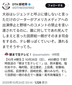 【速報】田原総一朗の長女、田原敦子(テレ朝社員)が内情暴露「高市首への不適切発言カットを頼んだが、番組Pが笑いながら無視して放送した」