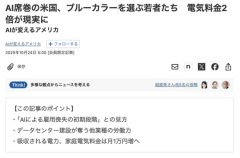 アメリカ、AIのせいで電気料金が2倍に 知的労働の大卒は就職難に