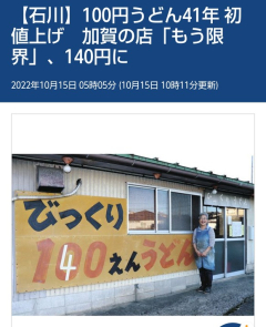【悲報】 おばあちゃん「41年間、100円うどんを販売してたけどもう限界。値上げする!」