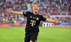 キミッヒ、ゲレイロ、17歳カール! ウルビヒ起用のバイエルンが全勝継続…町野途中出場の最下位・ボルシアMGは開幕8試合未勝利ブンデスリーガ第8節のボルシア・メンヒェングラットバッハvsバイエルンが25日にボルシア・パルクで開催された。9月にジェラルド・セオアネ監督を解任し、セカンドチームを率いるオイゲン・ポランスキ氏が暫定監督を務める中、リーグ戦未勝利が続いている最下位のボルシアMG。王者相手に金星を飾り、浮上のきっかけを掴みたい一戦で、町野修斗はベンチスタートとなった。対するバイエルンは今季公式戦12試合全勝中の絶好調。リーグ戦では2位ライプツィヒに勝ち点5差をつけて首位に立っており、連覇に向けて理想的な滑り出しを見せている。21日に2029年夏まで契約を延長したヴァンサン・コンパニ監督は会見での明言通り、マヌエル・ノイアーに代えてヨナス・ウルビヒを今季初めてブンデスリーガで先発起用した。バイエルンのバスの到着が遅れて、当初の予定より15分ほど遅れてキックオフを迎えた一戦。開始2分でルイス・ディアスがいきなり一対一を迎えるなど、王者が序盤から攻勢に。なんとか王者相手に奮闘したいボルシアMGだが、15分にルイス・ディアスのタッチが大きくなったところをイェンス・カストロプが足裏タックル。最初はイエローカードが提示されたものの、VARの末にレッドカードに変更。ボルシアMGは早い時間から数的不利となる。一人多い状況となったバイエルンは攻勢を継続してボルシアMGを畳みかけようとするも、引いた相手に決定機を創出できず。42分にはボックス右外に走り込んだルイス・ディアスの折り返しを中央でケインがフリーで右足を合わせたが、ミートしきれず。GKモリッツ・ニコラスに阻まれた。バイエルンは後半開始から、ダヨ・ウパメカノとサシャ・ボエに代えて、コンラート・ライマーとラファエル・ゲレイロを投入。レオン・ゴレツカが最終ラインに入り、ゲレイロが右サイドバック、ライマーが左サイドバックに入った。そのバイエルンは50分、左サイドのルイス・ディアスのパスがボックス右に流れると、フリーのマイケル・オリーセに。しかし、一度目のシュートはゴールカバーに入った相手DFに、跳ね返りに左足を合わせた二度目のシュートはGKモリッツ・ニコラスの足にブロックされた。ボルシアMGが63分に町野修斗を投入した直後、バイエルンがついにボルシアMGのゴールをこじ開ける。64分、ボックス左に走り込んだライマーの折り返しのこぼれ球を拾ったセルジュ・ニャブリがボックス中央につなぐ。ヨズア・キミッヒの右足シュートは相手DFにブロックされるも、自身のもとにこぼれてきたボールを今度は冷静に左足でゴール右へと蹴り込んだ。ついに均衡を破ったバイエルンはさらに69分、左サイドでのパスワークからボックス手前のオリーセにボールが渡ると、寄せてきた相手の股を抜く絶妙なスルーパス。これをゲレイロがゴール右に決めた。連続失点で2点ビハインドとなったボルシアMGは71分、右CKの場面でケビン・ディクスがトム・ビショフにボックス内で倒されてVARの末にPKを獲得。しかし、キッカーのケヴィン・シュテーガーのシュートは左ポストに嫌われてしまう。このピンチを脱したバイエルンは76分にルイス・ディアスを下げて17歳のレナート・カールを投入。するとその5分後、ボックス右手前でパスを受けたカールがカットインから左足を振り抜いてゴール左上へ。相手守護神が一歩も動けない完璧なシュートでトドメを刺した。前半こそ数的不利のボルシアMG相手に苦戦も、終わってみれば3-0の快勝。バイエルンが今季全勝を継続している。一方のボルシアMGは開幕8試合勝利なしとなっている。FC BAYERN (XXXXX) MUNCHEN EV 356…
