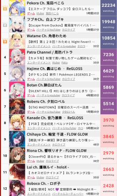 引用元: 103: Vtuberまとめ2025/10/26(日) 22:38:52.18 現在の数字です 148: Vtuberまとめ2025/10/26(日) 22:40:01.15 >>103 ルイ… 161: Vtuberまとめ2025/10/26(日) 22:40:18.84 >>103 今のルイってリオーナ以下のかよ 170: Vtuberまとめ2025/10/26(日) 22:40:29.88 >>148 昼間強かったぞ 179: Vtuberまとめ2025/10/26(日) 22:40:41.92 >>103 ルイってもしかしてオワコン? 192: Vtuberまとめ2025/10/26(日) 22:41:01.46 >>179 いつ始まったんだよ 202: Vtuberまとめ2025/10/26(日) 22:41:17.93 >>103 ルイは案件な 208: Vtuberまとめ2025/10/26(日) 22:41:21.66 >>179 始まってすらいない 209: Vtuberまとめ2025/10/26(日) 22:41:23.57 >>103 わため歌枠つえーよな 218: Vtuberまとめ2025/10/26(日) 22:41:30.70 >>103 すこん部は勝てる気みたいだったけど結局ぺっさんのほうが強いじゃん 263: Vtuberまとめ2025/10/26(日) 22:42:37.22 >>103 また2.2万の心停止w 328: Vtuberまとめ2025/10/26(日) 22:44:02.26 >>179 まあ一応は案件ソシャゲだからあんなもんだろ 439: Vtuberまとめ2025/10/26(日) 22:46:41.94 >>218 フブキを仮想敵とか随分レベル低くなったな ってか誰かと比べないと気が済まないのか 444: Vtuberまとめ2025/10/26(日) 22:46:52.33 >>103 パトラ強いな 620: Vtuberまとめ2025/10/26(日) 22:51:51.31 >>103 ぺ「イワークがなければ即死だった」…