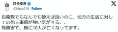 転載元: muffin ★ 2025/10/27(月) 12:51:53.99 ID:W0LkguCQ9 2025年10月27日 8時39分 「2ちゃんねる」開設者で元管理人の「ひろゆき」こと西村博之氏(48)が27日までにX(旧ツイッター)を更新。全国で相次ぐクマ被害について私見を述べた。 クマによる人的被害が各地で多発している。環境省によると、2025年度の犠牲者は24日時点で全国9人と過去最多で、その後も被害が続いている。 ひろゆき氏は「自衛隊でもなんでも使えば良いのに、地方の生活に対しての他人事感が強い気がする。。熊被害で、既に10人が亡くなってます」と私見を述べた。 ひろゆき氏の投稿に対し「自衛隊の装備自体、人間向けであって熊を撃つには火力不足だそうですよ」「でも自衛隊って銃火器の扱いはプロでも鳥獣狩猟に関しては素人だよ? 訓練無しじゃ二次災害につながる気しかしないけど」「あのね。何でも困ったらすぐ自衛隊を使えば良いって なんでも屋みたいに言うけど 自衛隊は国防のためにあり、日々訓練してます。災害派遣、鳥インフル殺処分まで借り出されて 自衛隊内では困るを通り越して怒ってますよ」などと書き込まれていた。 ※自衛隊でもなんでも使えば良いのに、地方の生活に対しての他人事感が強い気がする。。熊被害で、既に10人が亡くなってます。 — ひろゆき (@hirox246) October 26, 2025 2: 名無しさん@恐縮です 2025/10/27(月) 12:52:51.21 ID:LeKy4OYT0 おまえも他人事目線じゃんwwwww…