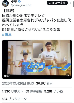 1:ウンピョウ(千葉県) [CA]:2025/10/27(月) 09:04:29.99 ID:fgbUuoXV0● BE:662593167-2BP(2000) — (@) October 27, 2025 2:ヨーロッパオオヤマネコ(ジパング) [US]:2025/10/27(月) 09:04:56.77 ID:OKVEEMER0 この番組まだやってたのかよ 26:サバトラ(やわらか銀行) [KR]:2025/10/27(月) 09:37:46.30 ID:kNAdGsw/0 >>2 炎上してるの知らんの? 情弱? 51:ヨーロッパオオヤマネコ(ジパング) [US]:2025/10/27(月) 10:26:10.91 ID:OKVEEMER0 >>26 お前テレビが中心なんか? 頭アップデートしろよ…