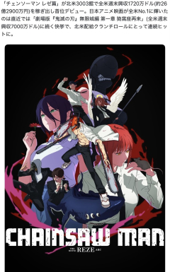 【速報】映画「チェンソーマン レゼ篇」、全米首位wwwwwwww