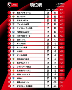 J1・新潟と湘南が来季J2降格確定 残り1枠は18位 横浜FC、17位 横浜F・マリノスとの争い 残り3試合で勝点差 5