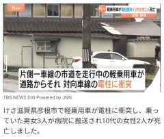 1 : 以下、?ちゃんねるからVIPがお送りします :2025/10/26(日) 18:18:03.910 ID:exGMScNt0.netもう死ぬしかない軽乗用車が電柱に衝突 高校生と大学生の女性2人死亡 運転の20歳男性は肋骨を折る重傷 滋賀・彦根市(TBS NEWS DIG Powered by JNN) - Yahoo!ニュース転載元スレッド:…