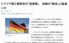 1 : ドイツ南部エルディングで22日、訓練中の独連邦軍の兵士と警察官が「銃撃戦」となり、兵士1人が軽傷を負った。なぜ軍と警察が発砲し合う事態となったのか。 ドイツメディアによると、連邦軍の訓練は22日、前線付近で無人航空機(ドローン)による攻撃や武装勢力の工作を阻止する――といったシナリオで始まった。約500人の兵士が参加する計画で、実戦に近い状況を作るため、演習場ではなく一般の道路や集落で行われたという。 22日夕、訓練を知らなかった住民が兵士を目撃し、「迷彩服を着て武器を持った人が納屋の陰に潜んでいる」と警察に通報した。警察官が駆けつけると、兵士が発砲。空包だったが、警察官が撃ち返し、兵士1人の顔を銃弾がかすめたという。兵士は警察官を訓練の「敵役」と勘違いしたとみられるという。全文はソースで 4 : 暴力装置と国営ヤクザの抗争 5 : 馬鹿みたい…