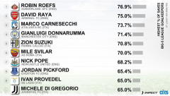 【朗報】パルマGK鈴木彩艶のセーブ率、70.8%で欧州5大リーグのGKで5位にwwwwwwww
