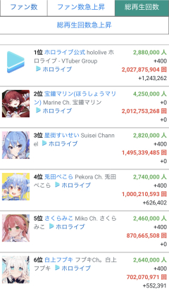 引用元: 2597: Vtuberまとめ (ワッチョイ 388e-XaeJ) 2025/10/28(火) 01:03:58.98 ID:q4N27wXT ぺっさん10億どりゃ 2609: Vtuberまとめ (ワッチョイ a865-paiw) 2025/10/28(火) 01:04:26.32 ID:tTVcUgR9 >>2597 ころさんぺこらクイズのときにこれ見たわ 2618: Vtuberまとめ (ワッチョイ 1f9d-iU8s) 2025/10/28(火) 01:04:45.44 ID:JAEi418u >>2597 マリンが公式抜きそうなの草 2627: Vtuberまとめ (ワッチョイW 1f9d-z1cS) 2025/10/28(火) 01:05:10.29 ID:NgNryD32 >>2618 とっくに抜いて抜き返された後だぞ 2632: Vtuberまとめ (ワッチョイ 3894-9Zx3) 2025/10/28(火) 01:05:24.51 ID:ofTihXqr >>2618 むしろ公式よりとっくにマリンのほうが多いと思ってたわ 公式何が再生されてるんだ 2636: Vtuberまとめ (ワッチョイW 388e-UAVX) 2025/10/28(火) 01:05:27.08 ID:KECFQidP >>2597 ぺこーらのアイコン変わってんの今気づいた いつから変わった? 2641: Vtuberまとめ (ワッチョイ 6c8e-paiw) 2025/10/28(火) 01:05:39.97 ID:LhcI5jKR >>2618 マリン一時期抜いてたけどな 公式のショート連打は強いんだな 2642: Vtuberまとめ (ワッチョイ 1f9d-iU8s) 2025/10/28(火) 01:05:41.18 ID:JAEi418u >>2627 まじかよ公式やるじゃん >>2632 ホログラか? 2659: Vtuberまとめ (ワッチョイW 245b-9TT6) 2025/10/28(火) 01:06:52.17 ID:nIW41YuF >>2636 3期生ライブの絵だからそのあたりじゃないの 2716: Vtuberまとめ (ワッチョイW 5a8e-6iQ6) 2025/10/28(火) 01:11:00.12 ID:f1Zci9T9 >>2597 マリン化け物…