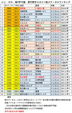 引用元: 310: Vtuberまとめ (ワッチョイW 2af9-wo5V) 2025/10/28(火) 02:03:19.97 ID:gmDOiInn いつもの人がまとめてたけどやっぱ今回のりりーか最強だったらしい てるあき屋🧪 @alqIQqN5lyVjMeI (2025/10/27 22:41:14) #ホロライブ甲子園2025 にじホロ混在するのに抵抗ある方はご注意下さい 個人的な振り返り用に資料作ってましたのでお裾分けです パワプロ24-25で開催された栄冠大会での野手総ステランキングです りりーか、さすがに最強すぎた #ホロライブ甲子園2025にじホロ混在するのに抵抗ある方はご注意下さい個人的な振り返り用に資料作ってましたのでお裾分けですパワプロ24-25で開催された栄冠大会での野手総ステランキングですりりーか、さすがに最強すぎた pic.twitter.com/ETwrmYfgCb — てるあき屋🧪 (@alqIQqN5lyVjMeI) October 27, 2025 332: Vtuberまとめ (ワッチョイ 5a9d-MMzX) 2025/10/28(火) 02:04:34.11 ID:Sy4fSTFm >>310 こんこよもステだけなら上位かやっぱり やはり不憫 342: Vtuberまとめ (ワッチョイW d48e-yLA0) 2025/10/28(火) 02:05:39.41 ID:uz6IkrFI >>310 りりーか最強! 358: Vtuberまとめ (ワッチョイW 391e-8iTq) 2025/10/28(火) 02:06:40.33 ID:L135gPOx >>310 りりーかすげーw 364: Vtuberまとめ (ワッチョイW 0b5b-2g1f) 2025/10/28(火) 02:07:21.51 ID:nBxYCHZX >>310 しかもリセマラ制限ありのハンデを背負っての1位ってりりーかとんでもないな 379: Vtuberまとめ (ワッチョイW 4ce5-Qiv0) 2025/10/28(火) 02:08:36.13 ID:SIO73m5e >>310 すげー 総ステ2650くらいが分かれ目かな 380: Vtuberまとめ (ワッチョイW 8b8f-AnCN) 2025/10/28(火) 02:08:36.54 ID:bRMhoEa1 >>310 りりーかも得意な事やりたい事見つけてイキイキしてるな らでんでそはじみゃ、それぞれやりたい事見つけてめちゃくちゃ楽しそうに活動出来てるのに青くんだけ病んでしまって残念だなぁ 385: Vtuberまとめ (ワッチョイW 0b5b-2g1f) 2025/10/28(火) 02:09:00.15 ID:nBxYCHZX >>310 つかりりーかは2024の低初期ステの鳥取で甲子園優勝して中位に食い込んでるのも凄いわ 410: Vtuberまとめ (ワッチョイW 559d-de6I) 2025/10/28(火) 02:10:59.60 ID:IQrJKgTP >>310 限界条が勝った一方で にじは王立ヘルエスタが優勝してるから 野手は本番運でいくらでもなりそうだな 470: Vtuberまとめ (ワッチョイW 2af9-wo5V) 2025/10/28(火) 02:15:53.64 ID:gmDOiInn >>410 そこは青特が強すぎた 482: Vtuberまとめ (ワッチョイW 559d-de6I) 2025/10/28(火) 02:16:44.31 ID:IQrJKgTP >>470 凄いね 500: Vtuberまとめ (ワッチョイW 559d-de6I) 2025/10/28(火) 02:18:16.74 ID:IQrJKgTP >>470 よくみたら投手もアンちゃんつええね…