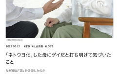 1 : 「ネトウヨ化」した母にゲイだと打ち明けて気づいたこと(富岡 すばる) | FRaU 僕のカミングアウトを「安倍晋三」で遮った母 僕は数年前、まだ30歳になって間もなかった頃、自分がゲイであることを母に打ち明けた。 別に一生言う必要もないだろうと考えていたのだが、言わないことで何となく母に対して感じ続けていた心の距離を、ありのままを話すことによって縮めようと思ったのだ。女手ひとつで僕を育ててくれた母との関係を、30代になったということもあり、修復したかったというのもある。 そして僕は、いつもと変わらないある休日の夜、意を決して話した。 「実は、男の人が好きなんだ」 「知ってたよ。母親が気付かないわけないでしょ」 母はなんでもないことのようにそう言った。僕の性的指向を、あっけないほどに受け入れてくれていたのだ。 この瞬間までは、これから改めて母とちゃんとした親子関係が構築できると信じていた。その直後、何の脈絡もなく彼女がいきなり安倍元首相や日本政府を称賛する話を始めるまでは。 僕が勇気を振り絞って行ったカミングアウトは、母の唐突な安倍晋三語りにより、たった数分で終了した。 僕は当時、安倍元首相の政策のいくつかには疑問を感じていたものの、そこまで否定的な感情を抱いていたわけではない。ただ、僕のカミングアウトとは何の関係もない元首相への称賛トークを母がいきなり始めたことには正直、面食らった。同性が好きで、それによって悩んでいたという僕の告白を否定も嘲笑もせず、ただ受け止めてくれていたこと自体は本当に嬉しかったのだが。全文はソースで 2 : 意味のないカミングアウトだよ 3 : ま、こんな家族も悪くないかなw…