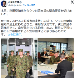 【朗報】自衛隊、秋田入り 深刻化する“クマ被害”に緊急支援へ