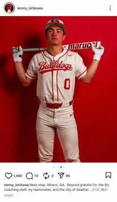 転載元: それでも動く名無し 2025/10/29(水) 07:19:47.85 ID:TTF6Acot0 石川ケニー 左投左打 ハワイ出身 高校時代は明秀日立を初の夏の甲子園出場に導く 4番投手で甲子園春夏連続出場達成 全国制覇した仙台育英を最も苦しめる 亜細亜大学で1年春から4番打者(二刀流も挑戦) ↓ シアトル大 ↓ ジョージア大 今季NCAA成績 投手 19試合(先発9試合) 5勝 6敗 防御率4.21 投球回66.1 奪三振73 野手 52試合 打率.318(201-64)本塁打8 打点32 出塁率.420 長打率.562 OPS.982 2: それでも動く名無し 2025/10/29(水) 07:20:39.69 ID:5bvpokO/0 麟太郎より打ちそう…
