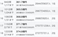 1 名前:名無しさん@おーぷん[] 投稿日:25/10/29(水) 13:02:53 ID:DVZH 劇場版「鬼滅の刃」無限城編 第一章 猗窩座再来103日目22:10時点????371.71億円(推定)現時点単日興行収入????0.21億円(推定)無限列車編の115日間まで残り0.08億円に。無限列車編まで残り35.79億円に。400.0億円まで残り28.29億円に。#鬼滅の刃#無限城編#興行収入 pic.twitter.com/x4CE2aX4RC— 馬嶌シェリー??@興行収入実況系V (@Mashima_Sherry) October 28, 2025 話題にならないのにここまで売れてるの逆に怖い 信者化が凄いんやろな 2 名前:名無しさん@おーぷん[] 投稿日:25/10/29(水) 13:03:34 ID:euTy まだやってんのかい 5 名前:名無しさん@おーぷん[] 投稿日:25/10/29(水) 13:04:20 ID:DVZH >>2 全然話題になってないからやってることすら知らんよな…